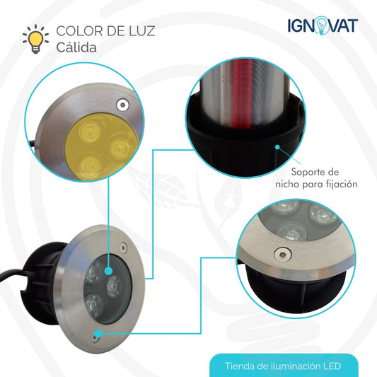 Luminaria Sumergible LED 3W en Acero inoxidable Luz Cálida Para Piscina y JacuzziPrecio habitual $114.900,00Precio habitualPrecio unitario / por-
