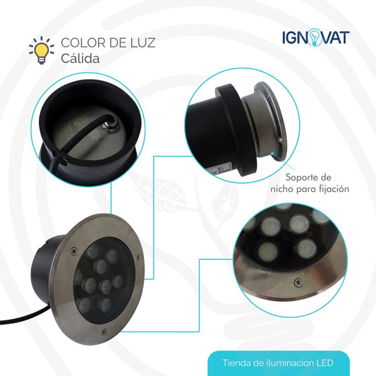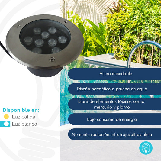 Luminaria Sumergible LED 9W en Acero inoxidable Luz Cálida Para Piscina y Jacuzzi